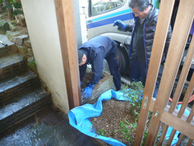 植え込みの中では木の根が進入してきます。